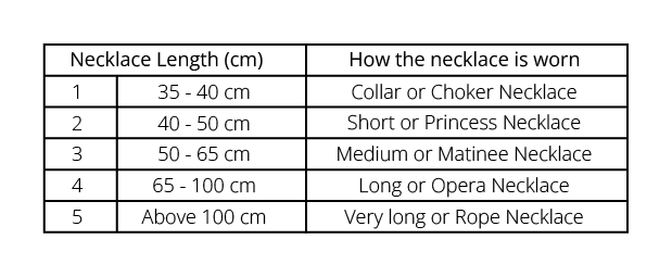 Based on the necklace length (in centimeters), you can determine how short or long the necklace will be from your neckline: