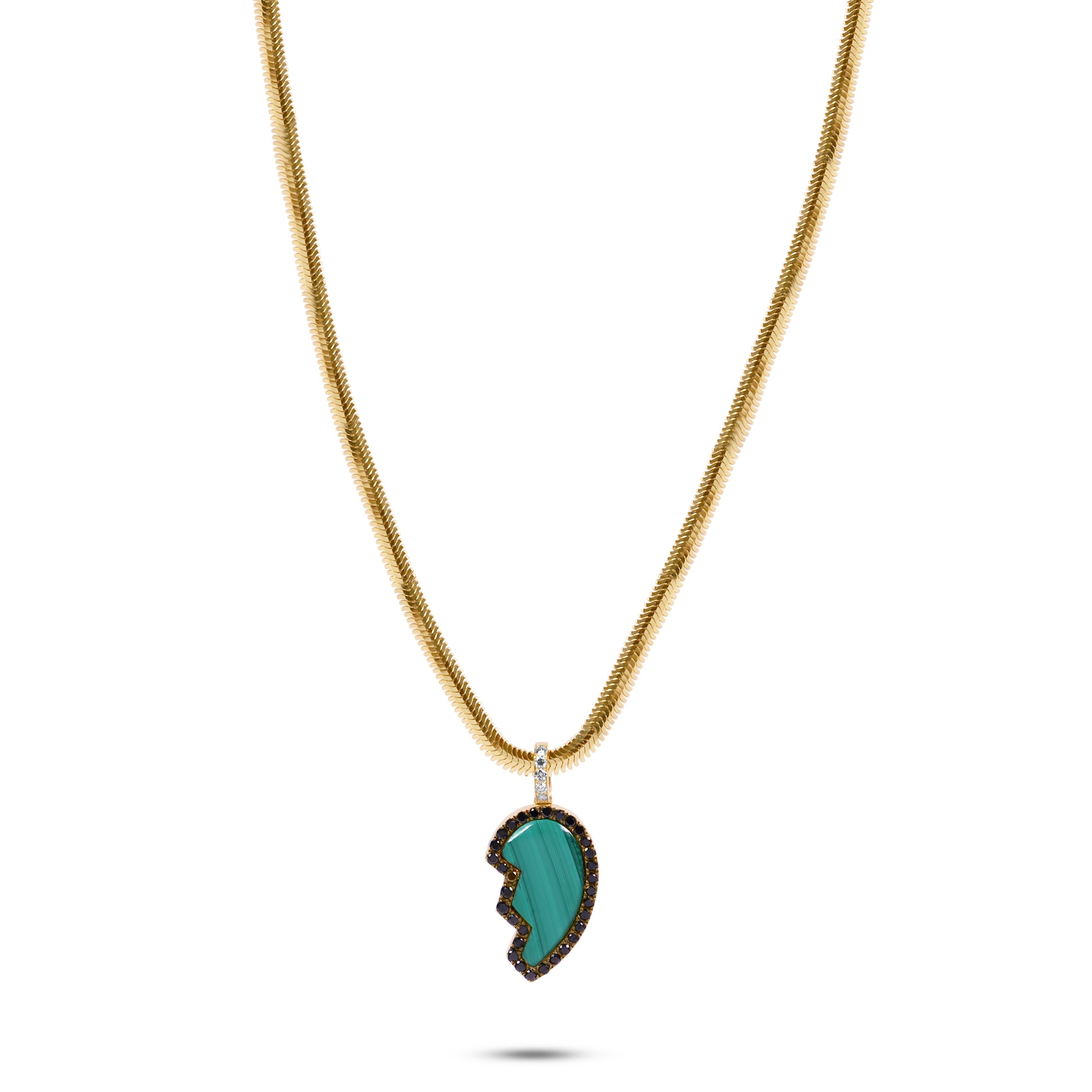 18k gold necklace, an 8cts broken heart with diamonds on top of the pendant and surrounding it.