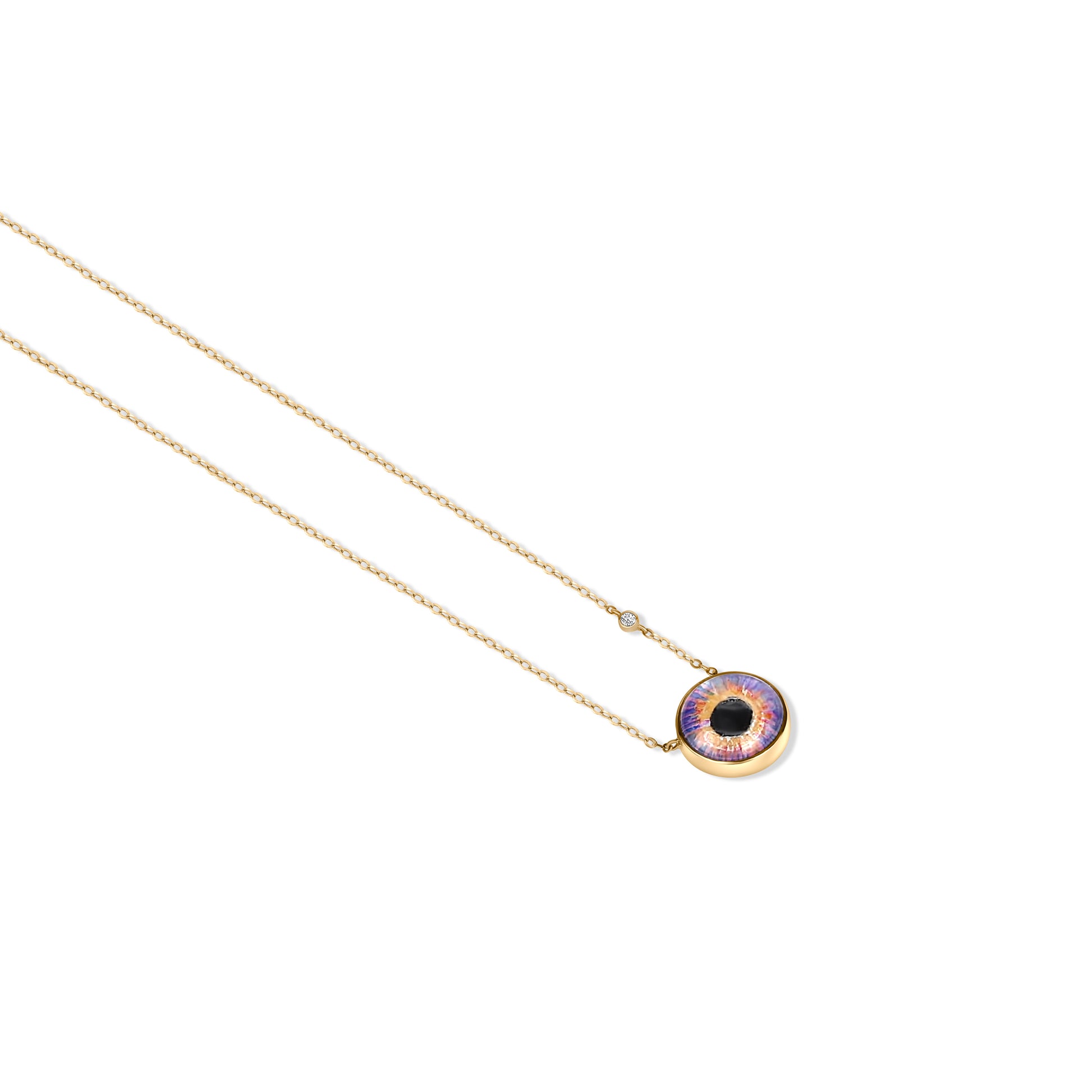 Small in size yet great in impact, the Salma Iris Necklace is the go-to piece that adds that burst of color, chicness, and class to the simplest outfit; sparkled with a single white diamond, it’s shine is the definition of glamour.