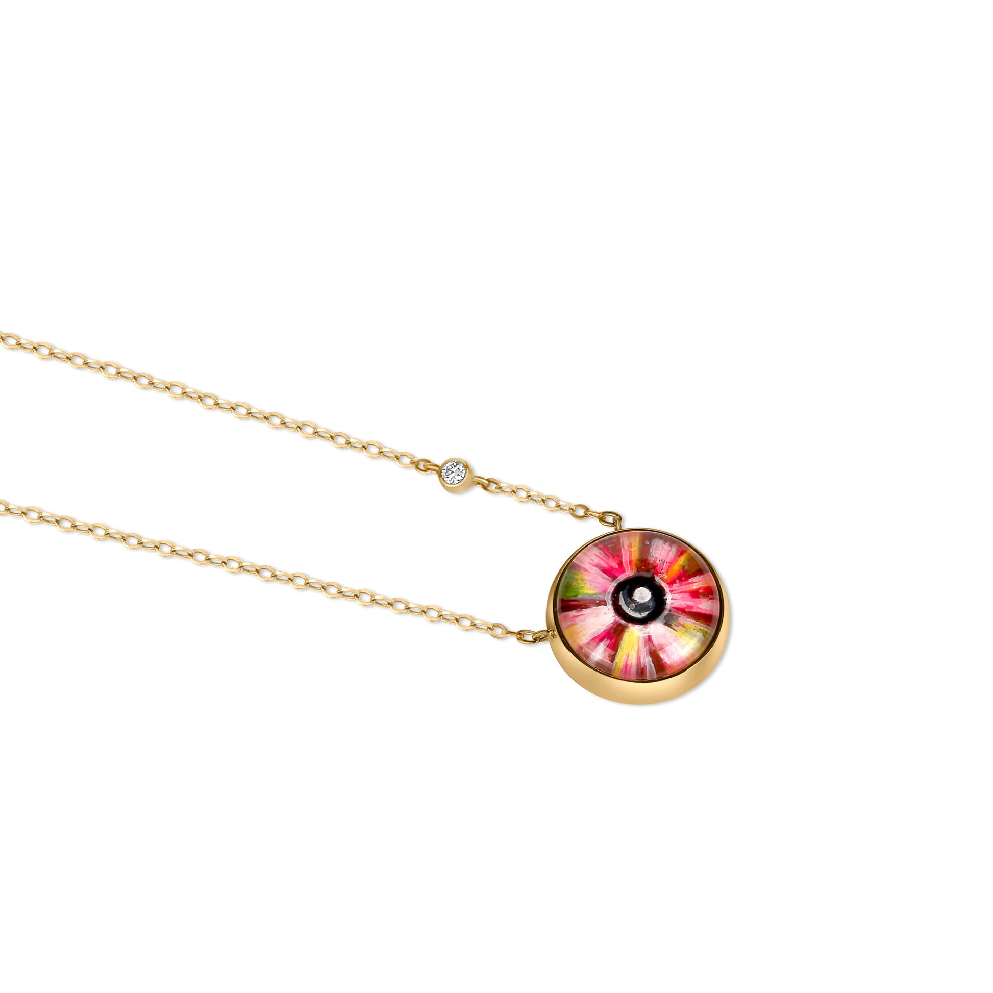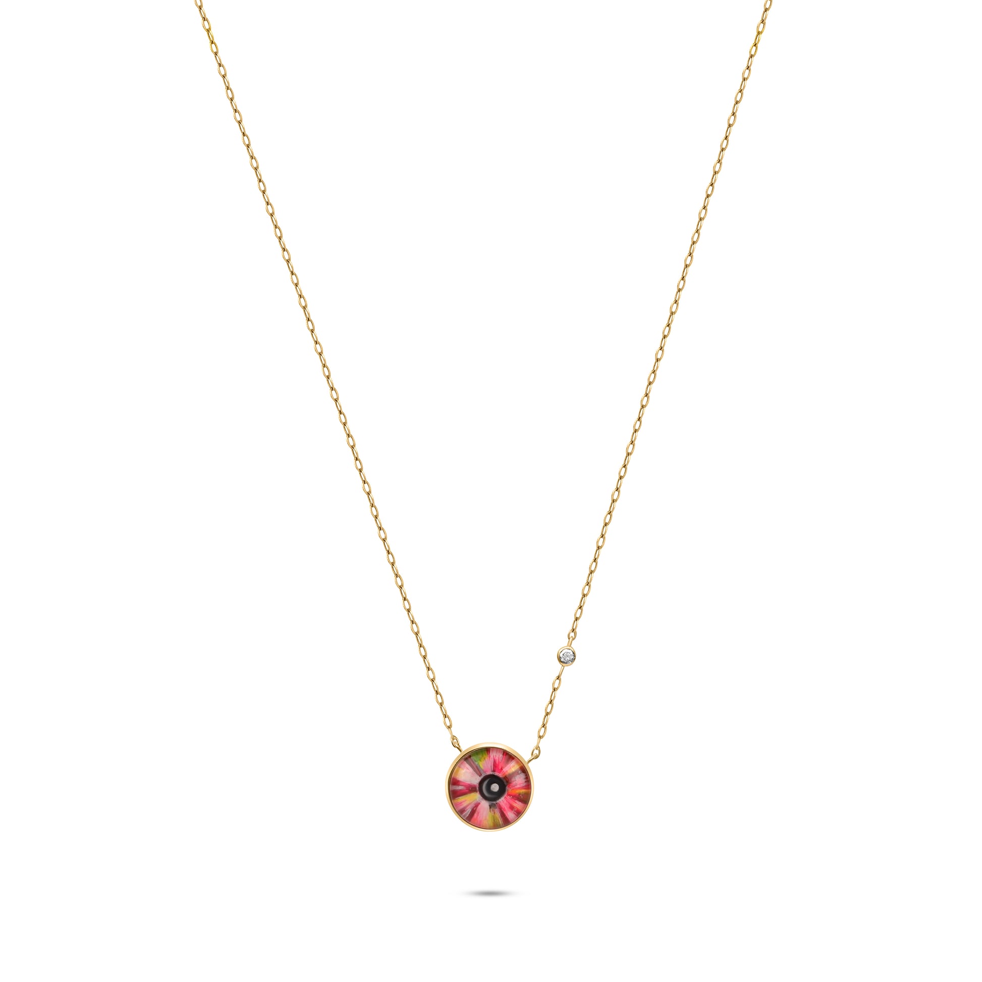 Embellished with the colors of the rainbow, the Valerie Iris Necklace sees the genuine, the kind-hearted, and the gentle; it observes and remembers, it explores and experiences, it learns and protects.